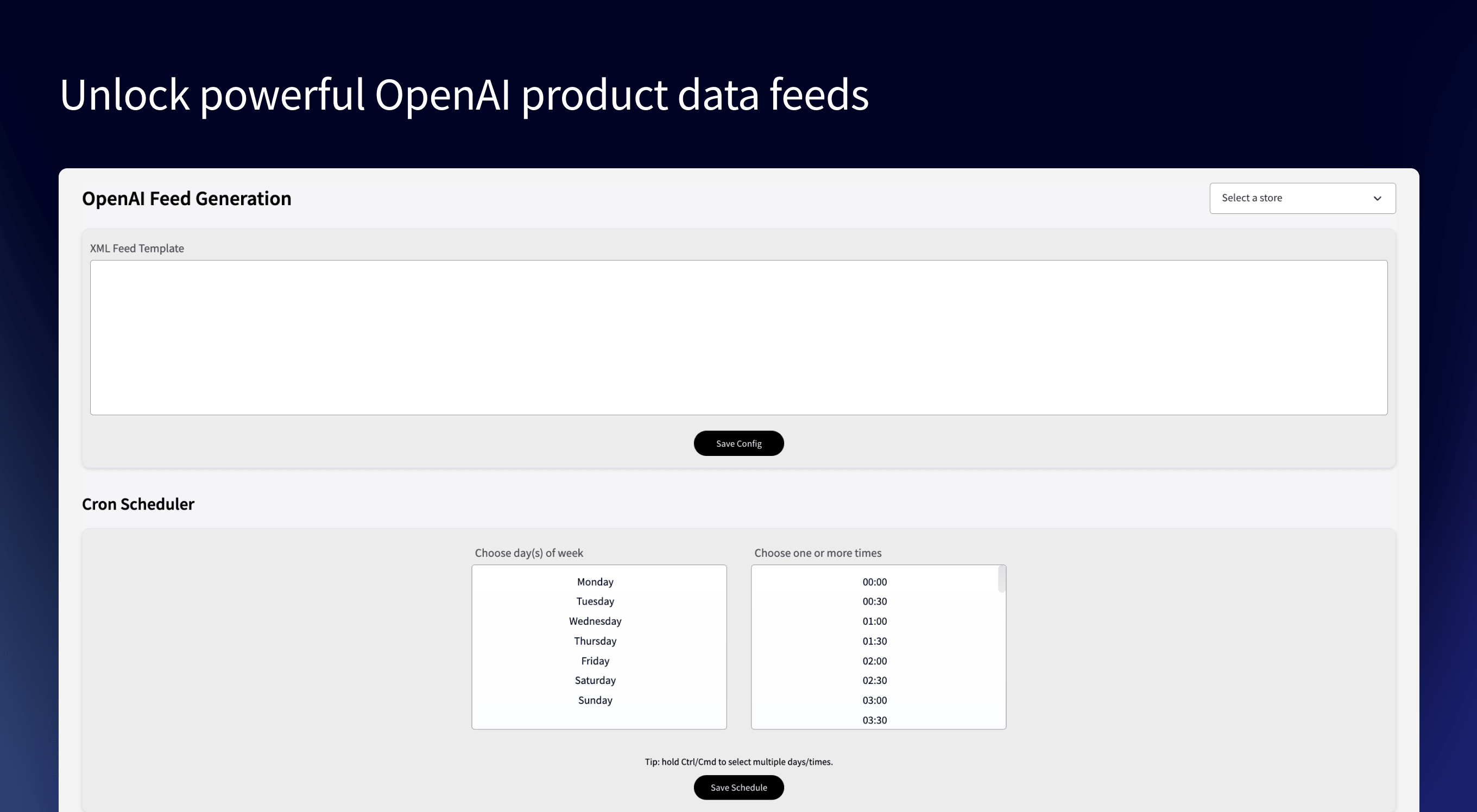 The integration is designed to be straightforward. Once installed, you can configure your feed requirements, connect to OpenAI, and start generating product data immediately either on demand or through scheduled automation.