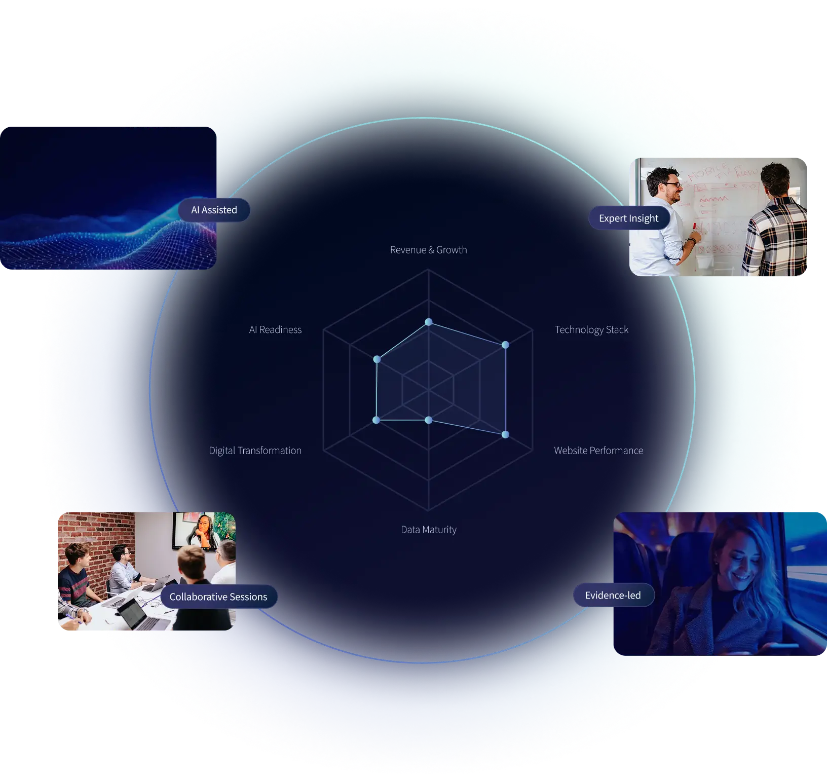 Powered by real-world experience and accelerated by AI and intelligent automation. It delivers strategic clarity quickly, giving leaders a clear route from ambition to action.